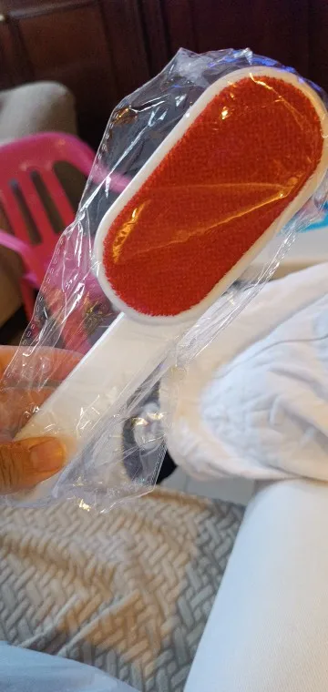 1️⃣ Run the brush over fabric surfaces covered in pet hair, lint, or dust.